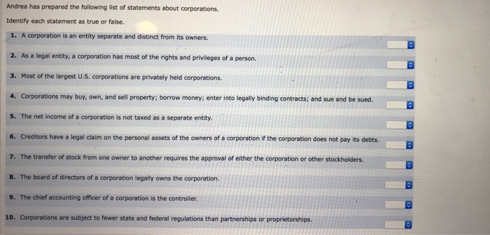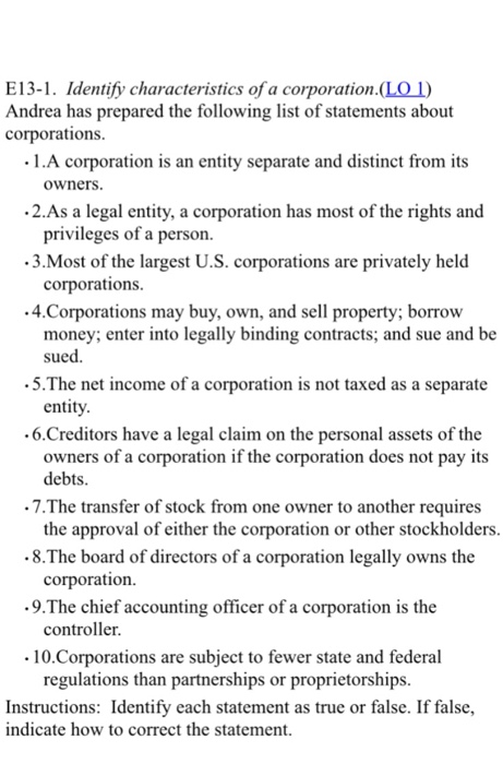 Andrea Has Prepared The Following List Of Statements About Corporations Identify Each Statement As True Or False Homeworklib